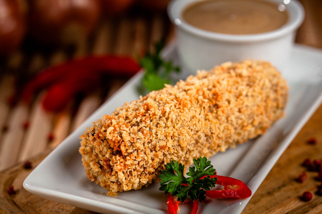 Bolinho costela suína na cachaça recheada com queijo muçarela